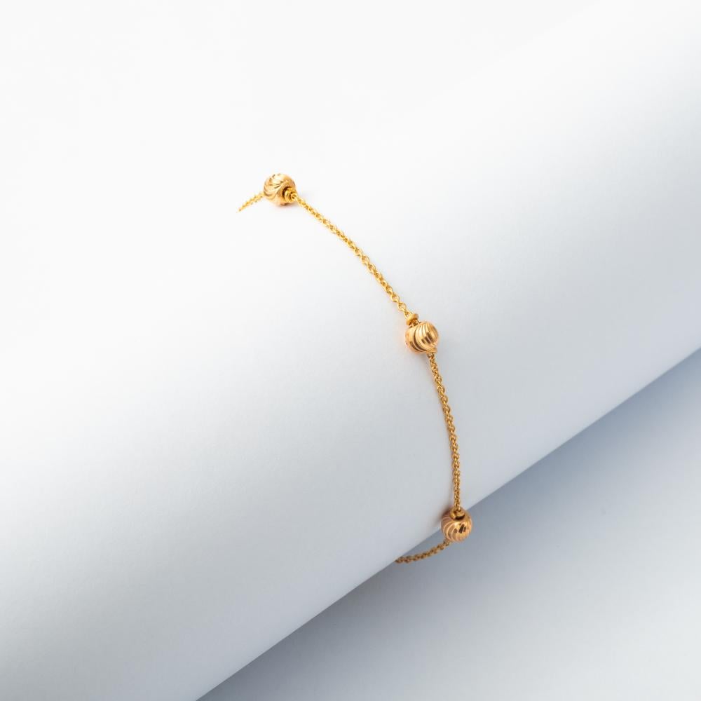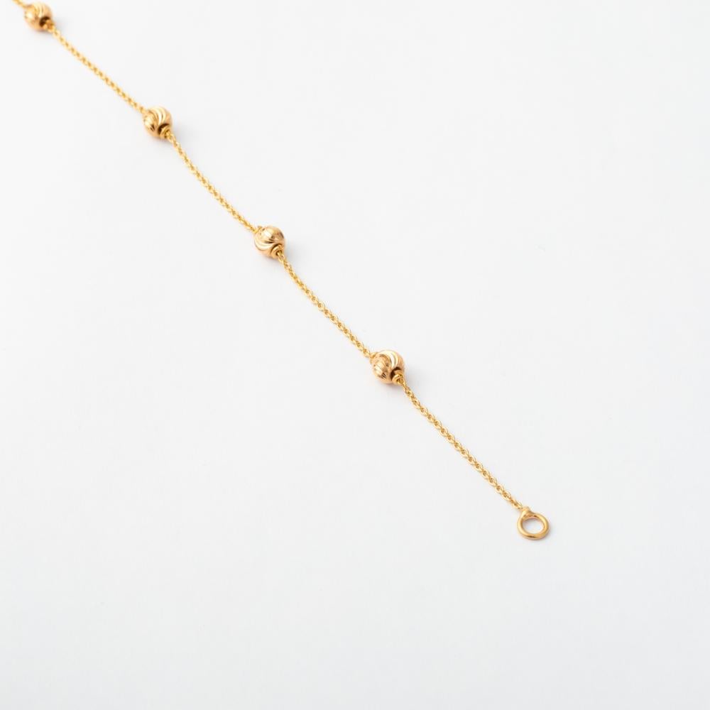 إسوارة عيار 21 بتصميم ناعم من كريات ذهبية لامعة، تنسدل بخفة حول المعصم لتمنحك إطلالة راقية تجمع بين الأنوثة والبساطة. مثالية للتنسيق مع مجوهراتك اليومية أو لتقديمها كـ هدية فاخرة تعبّر عن الذوق الرفيع 💎