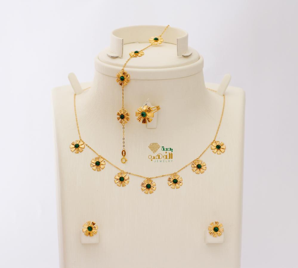 بوزن مثالي وذهب مضمون، الطقم هذا استثمار ذكي لأي سيدة تحب تجمع بين الذوق والذكاء.