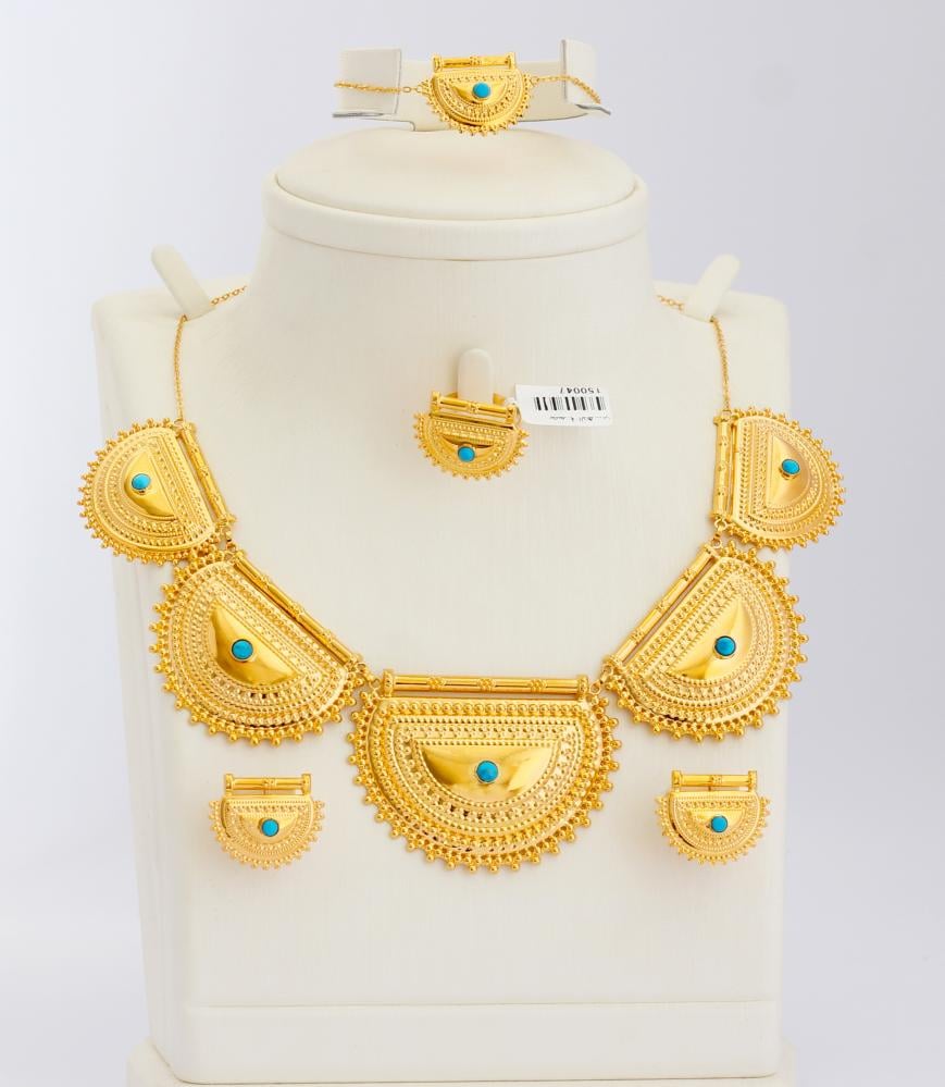 بوزن مثالي وذهب مضمون، الطقم هذا استثمار ذكي لأي سيدة تحب تجمع بين الذوق والذكاء.