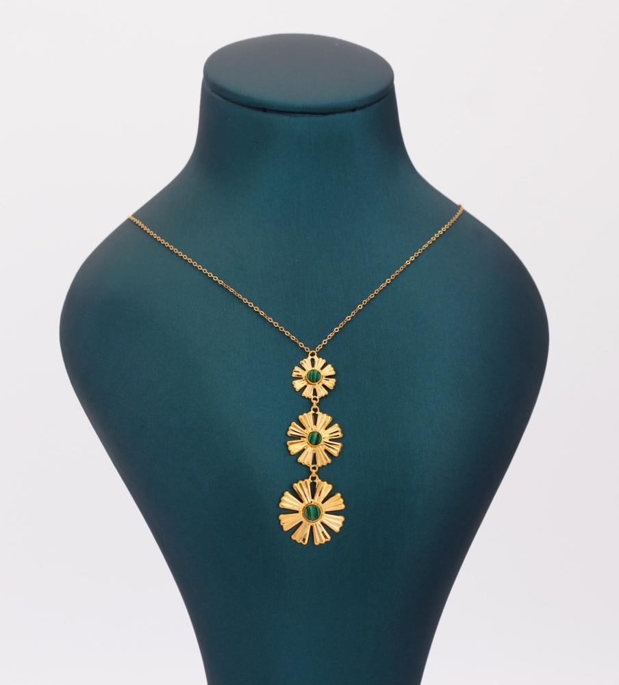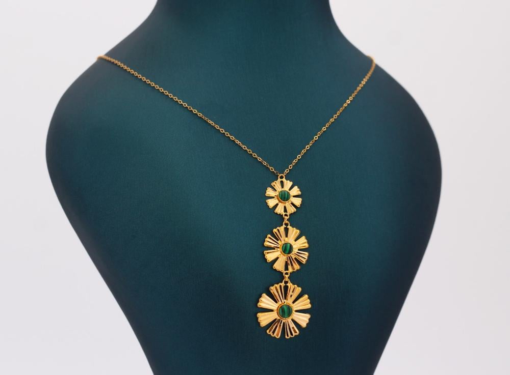 عقد ذهب تصميم ماسة ثلاث ادوار عيار 21