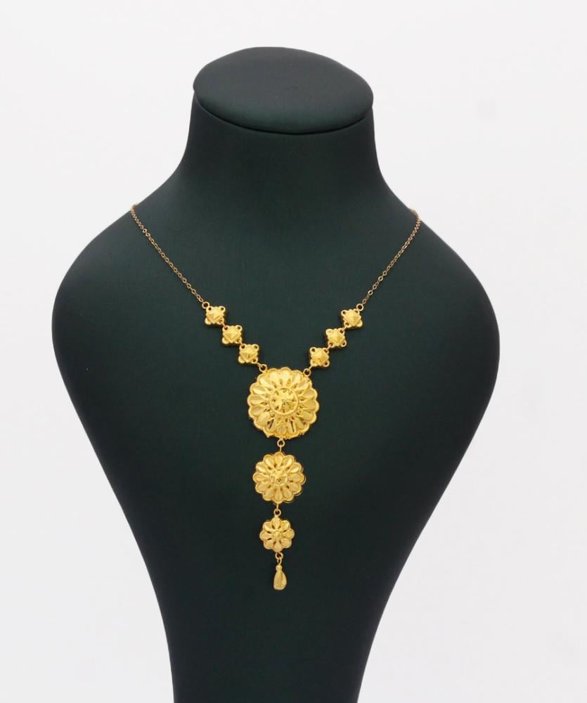 عقد ناعم من ذهب صافي يعبّر عن ذوقك ويبهج أي مناسبة. تصميمه البسيط يخلي كل أنثى تحبه من أول نظرة، ويجيك مغلف وجاهز للإهداء.